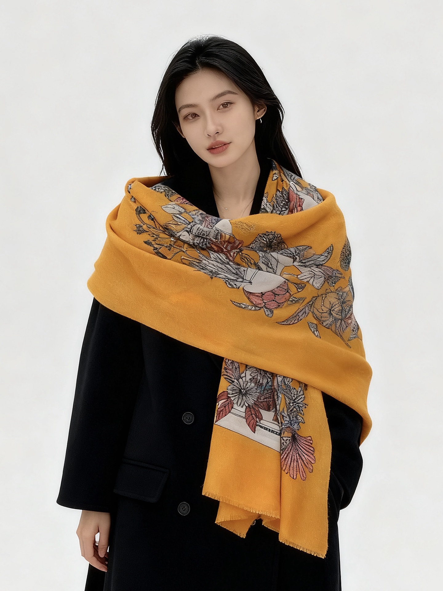 Double-sided floral cashmere scarf