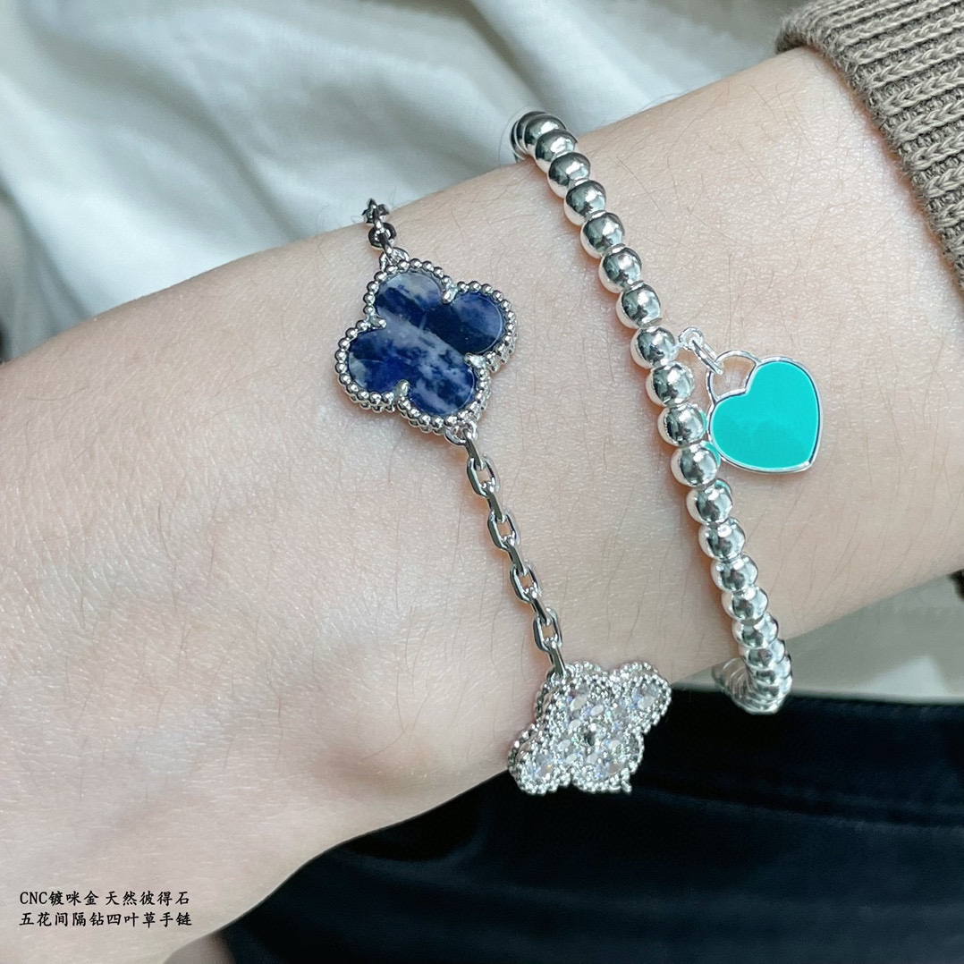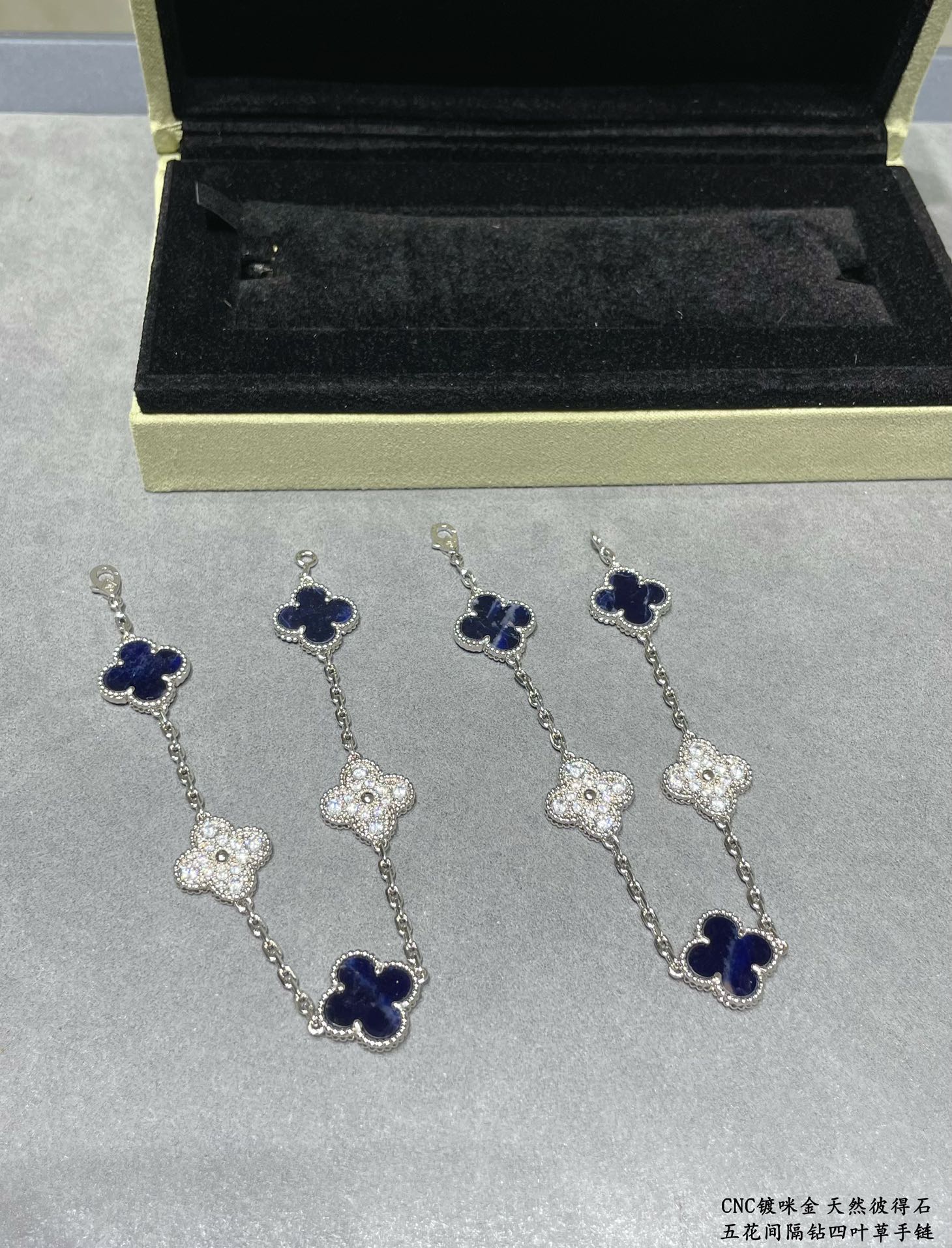 Natural Peterstone spaced diamond five-flower four-leaf clover bracelet