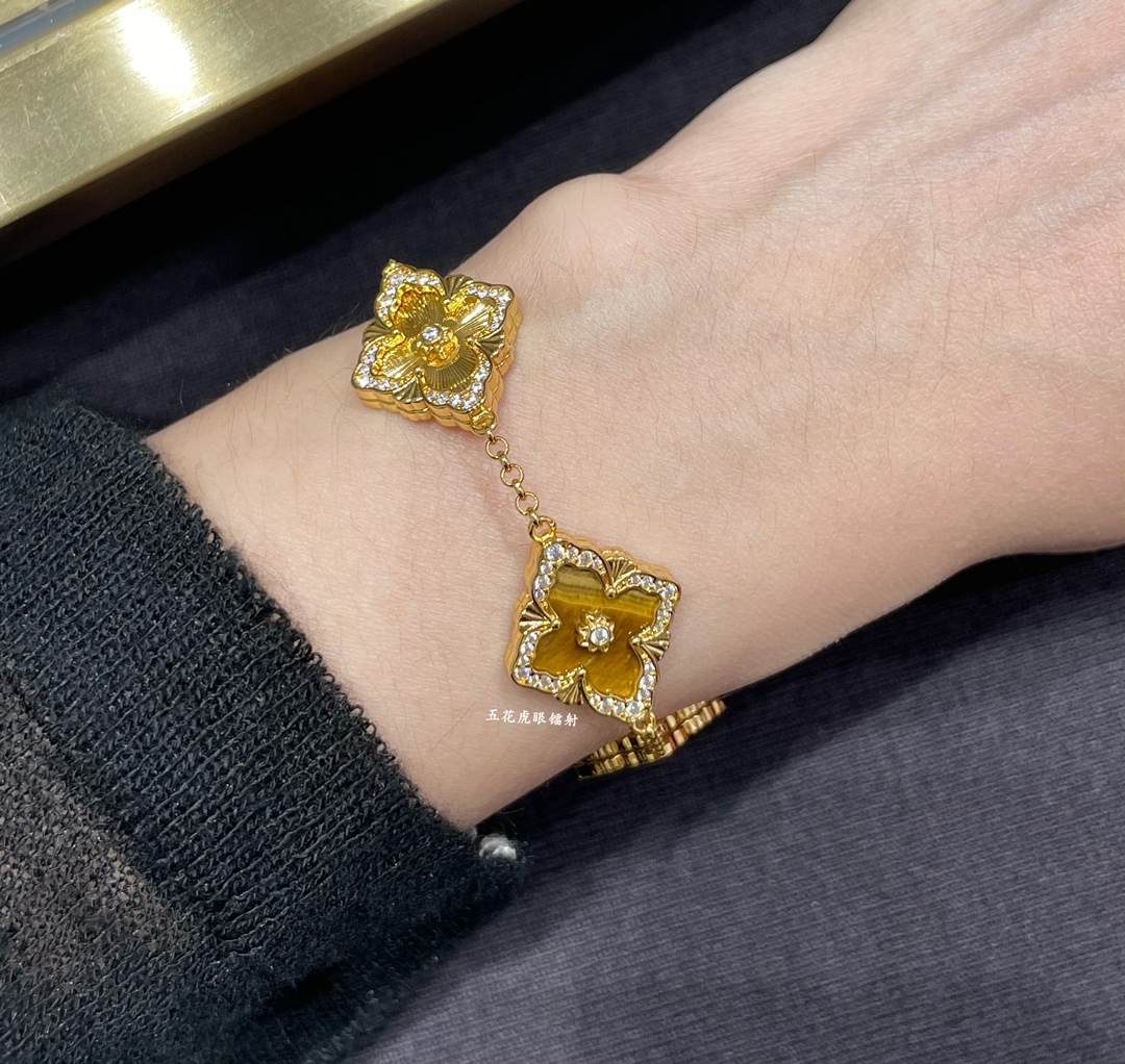 Retro court style four-leaf clover, four-petaled flower double-sided bracelet, unique Italian style