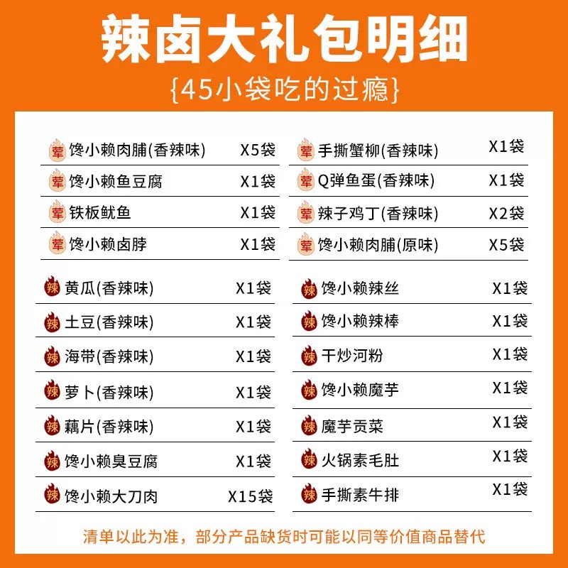 Spicy braised snacks spree dormitory to satisfy cravings Spicy snacks, 45 packets. Single auctions are not shipped, each single product is limited to one purchase, and the manufacturer's packaging is changed from time to time.