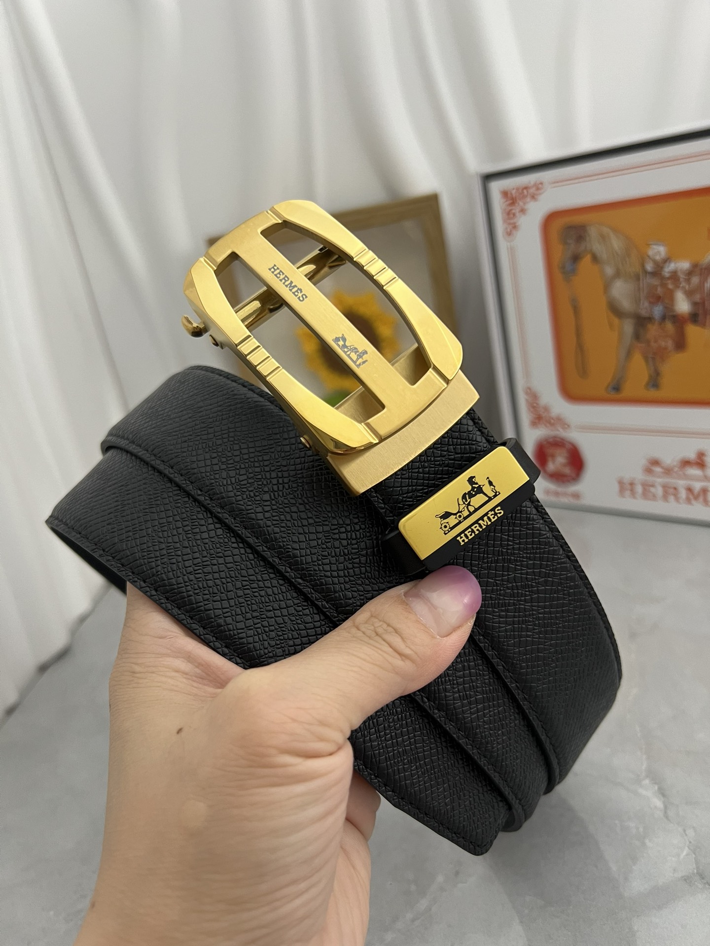 Black calfskin belt 38MM
