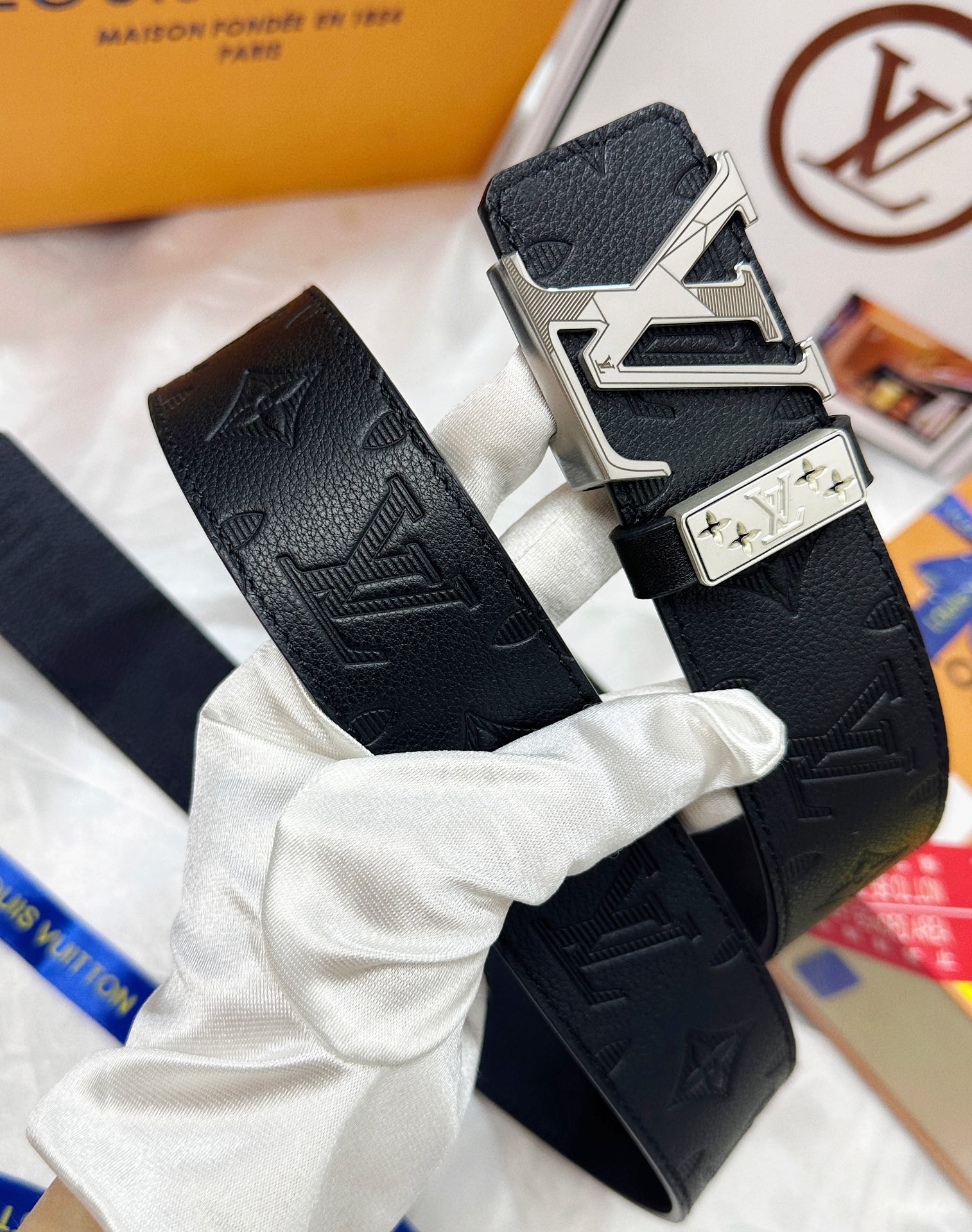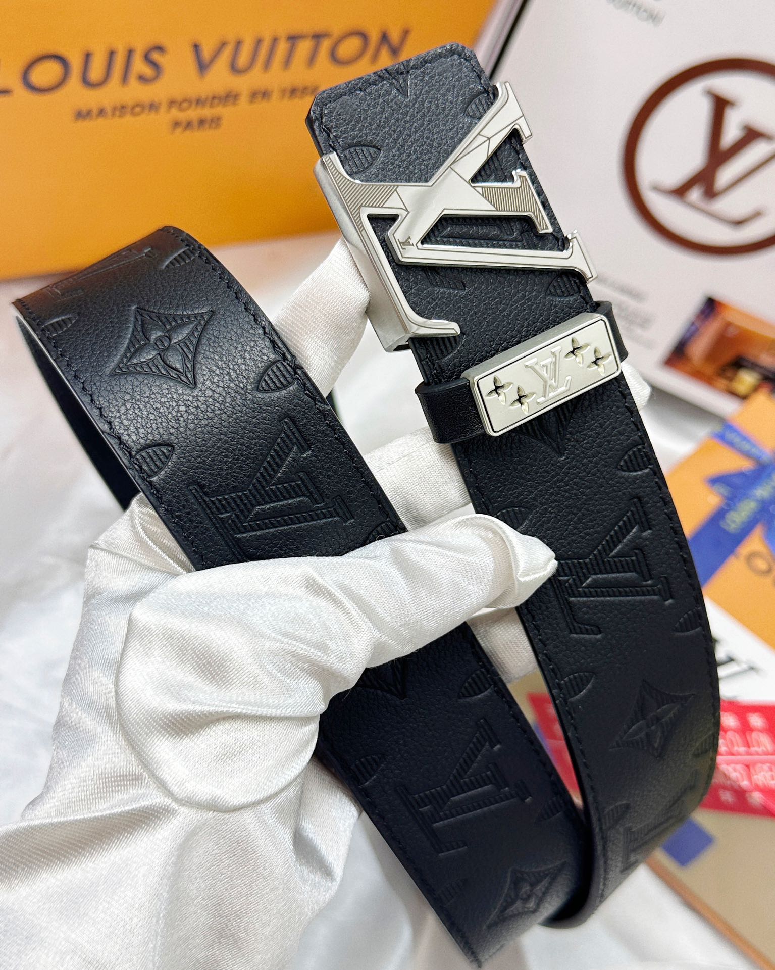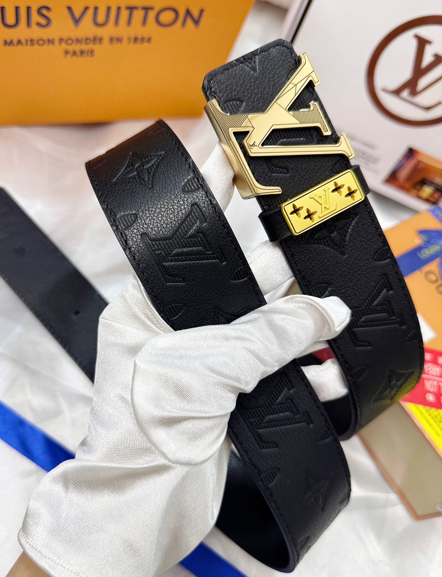 24K pure steel buckle, first layer calfskin lychee pattern, double-sided dual-purpose