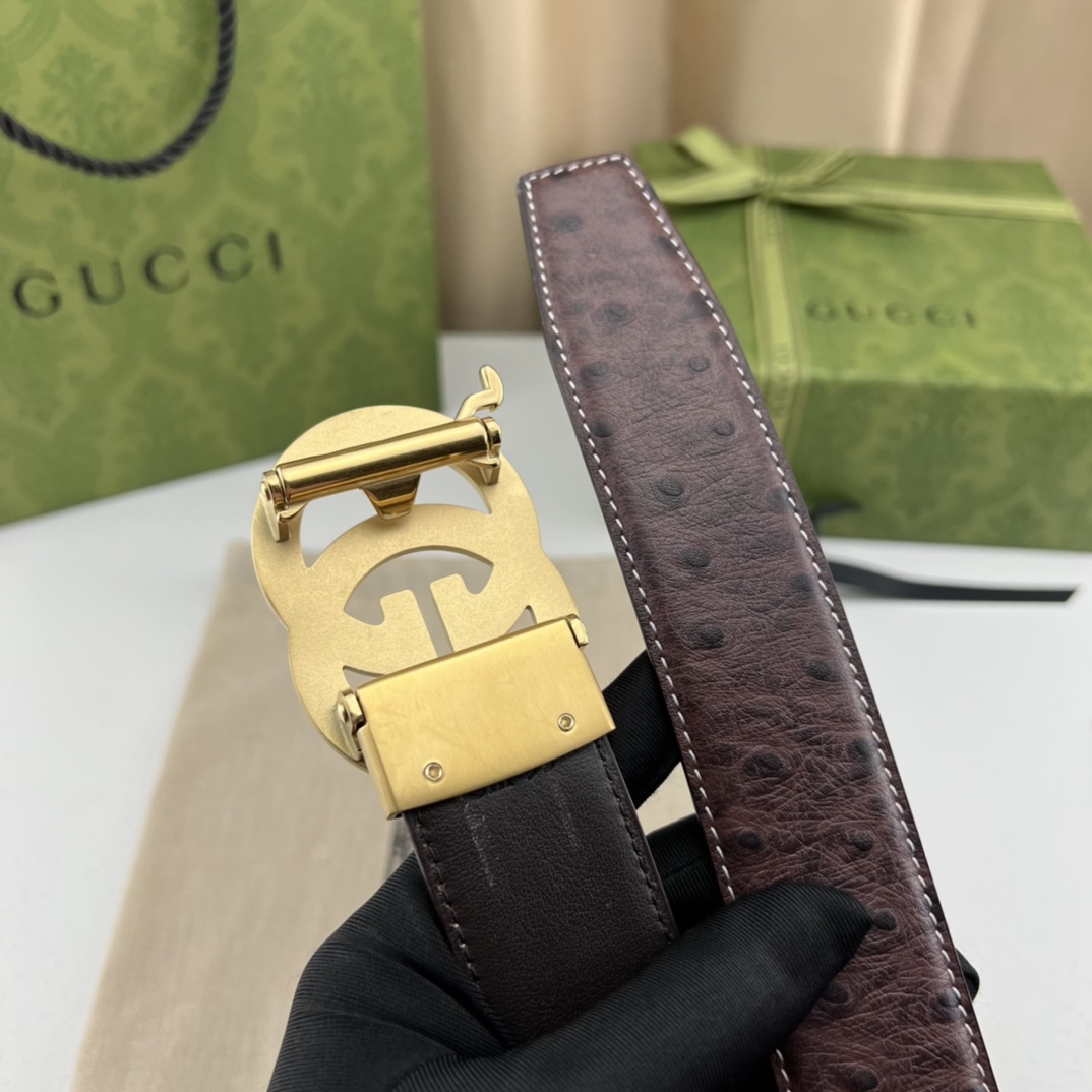 Big brand new model, with new automatic steel buckle, first layer cowhide ostrich pattern, black coffee color optional, with body width 3.4cm configuration box.