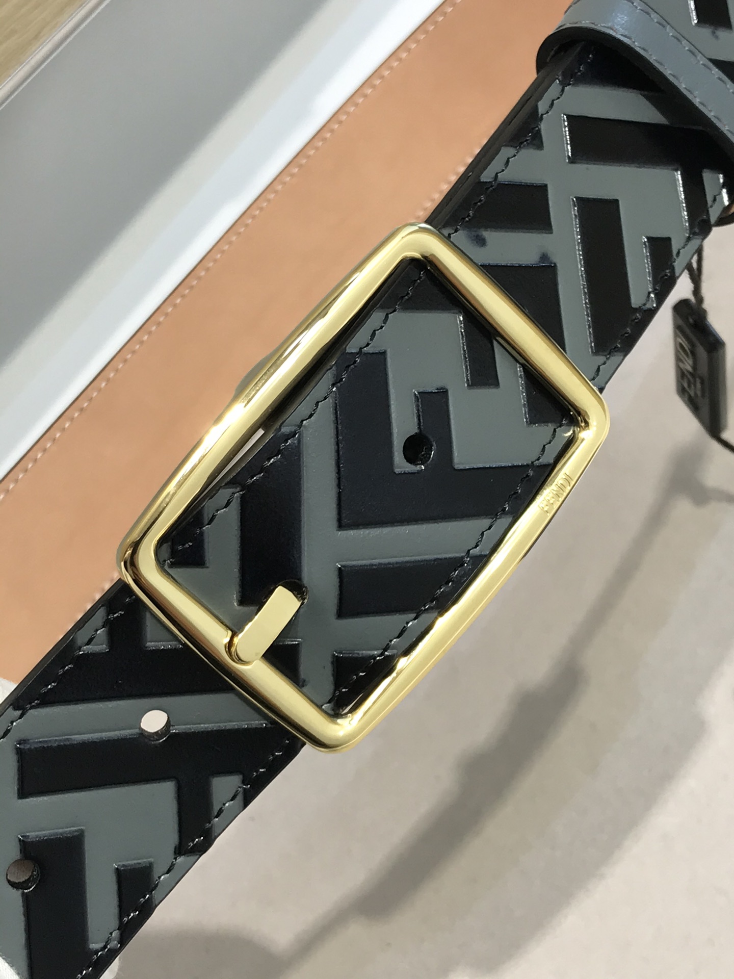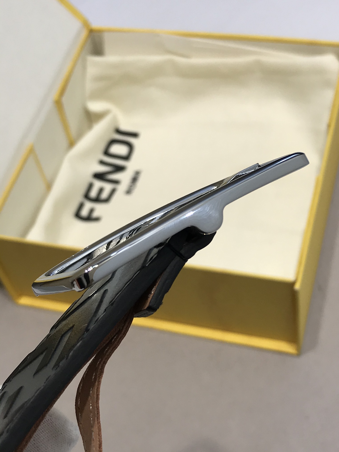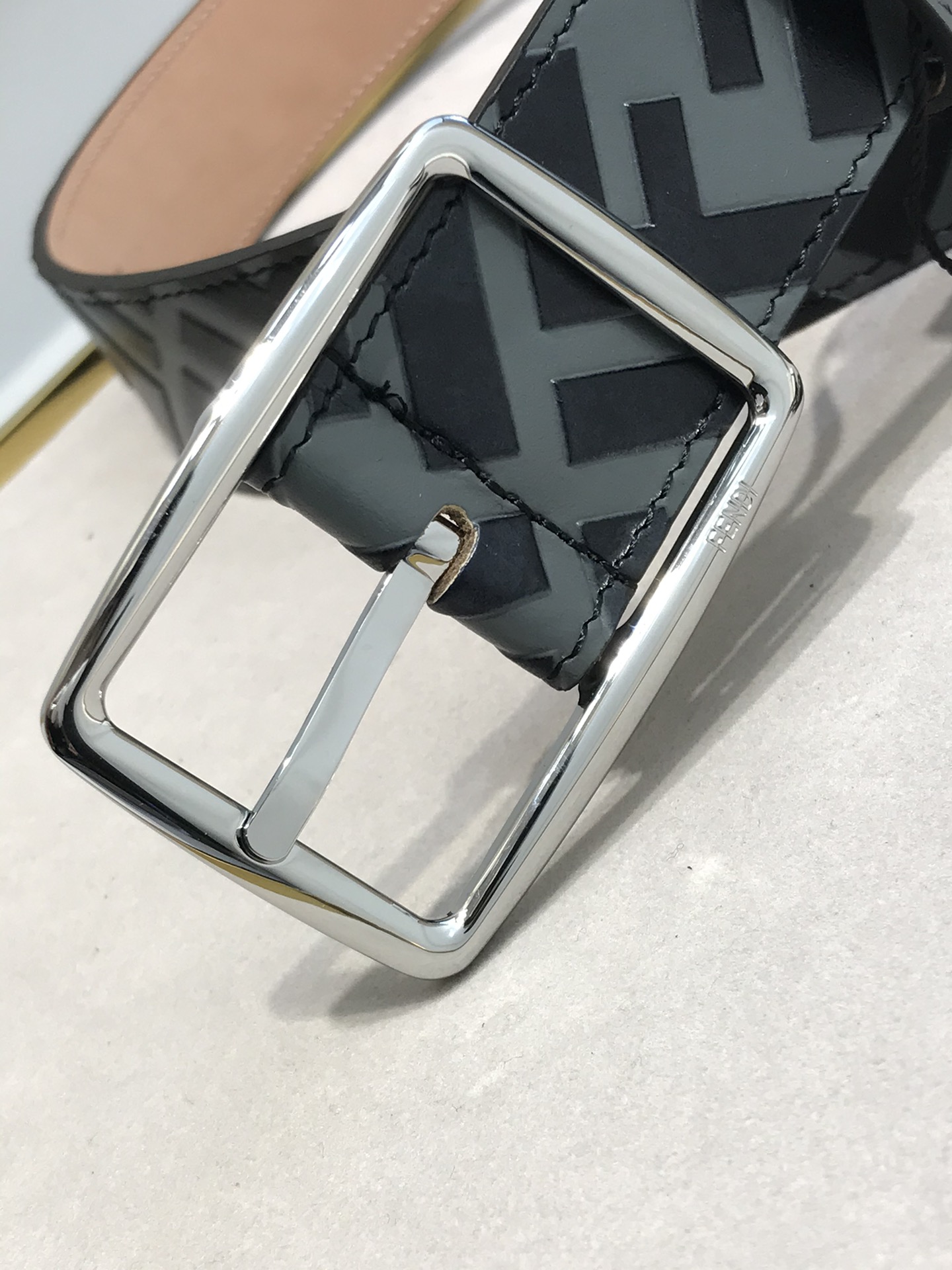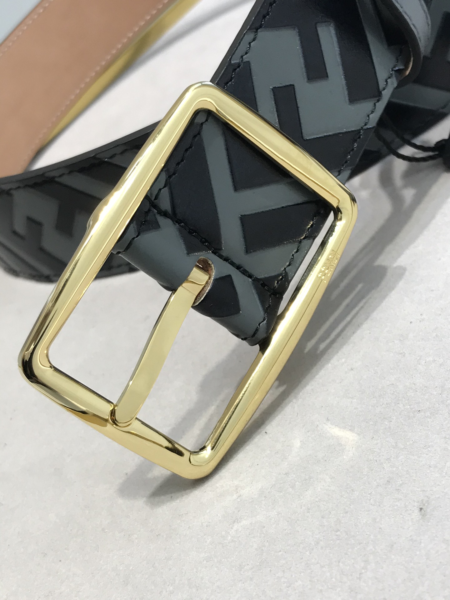 Letter pin buckle with signature F ring,
