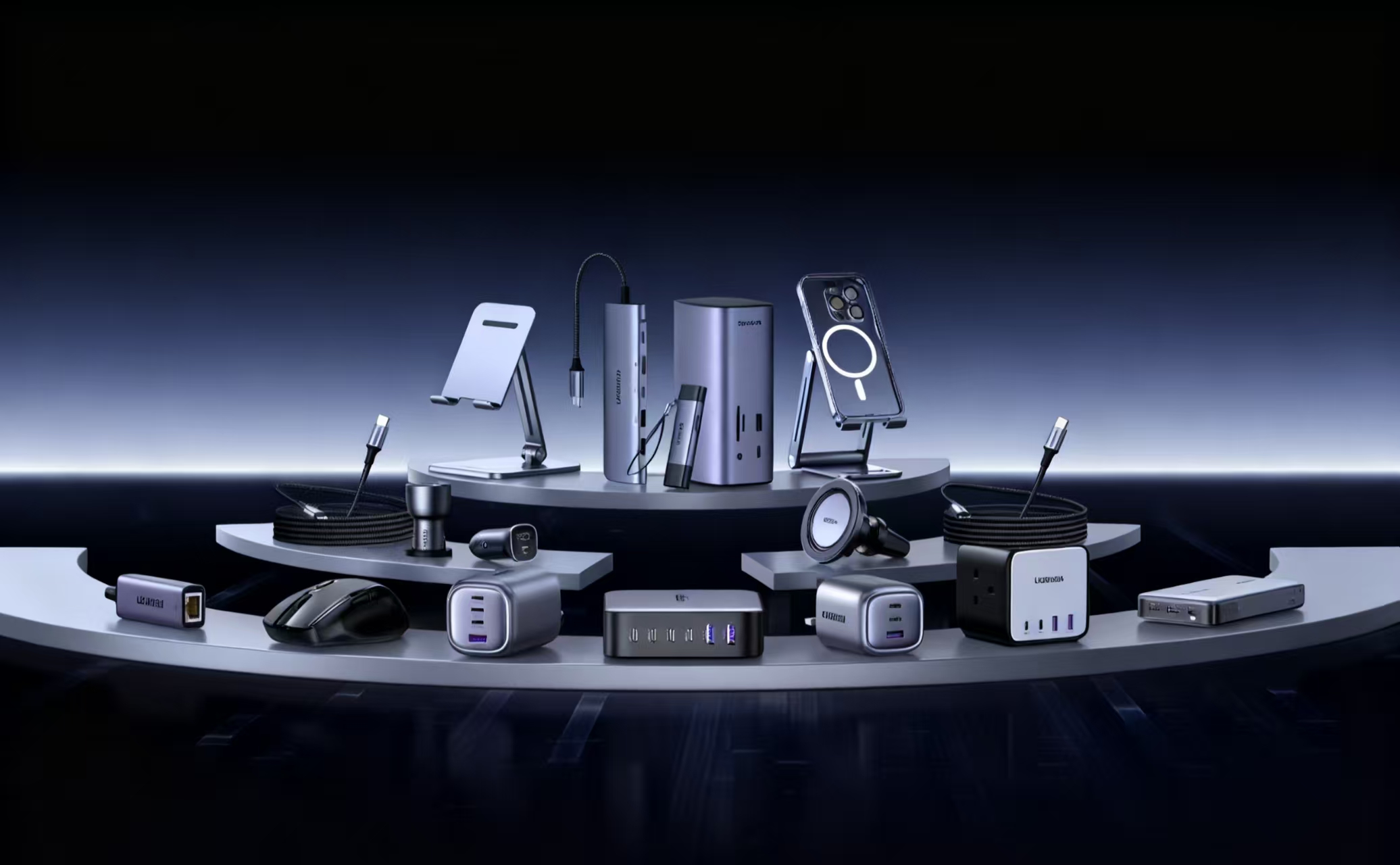 Mobile phones, earphones, microphones and other big-name products of the same style.