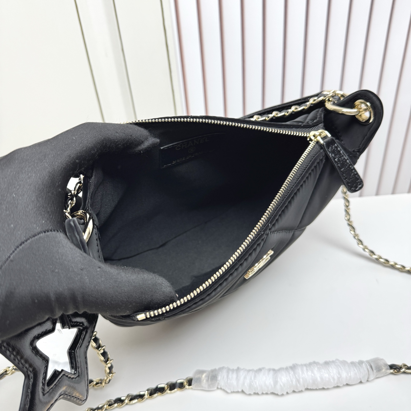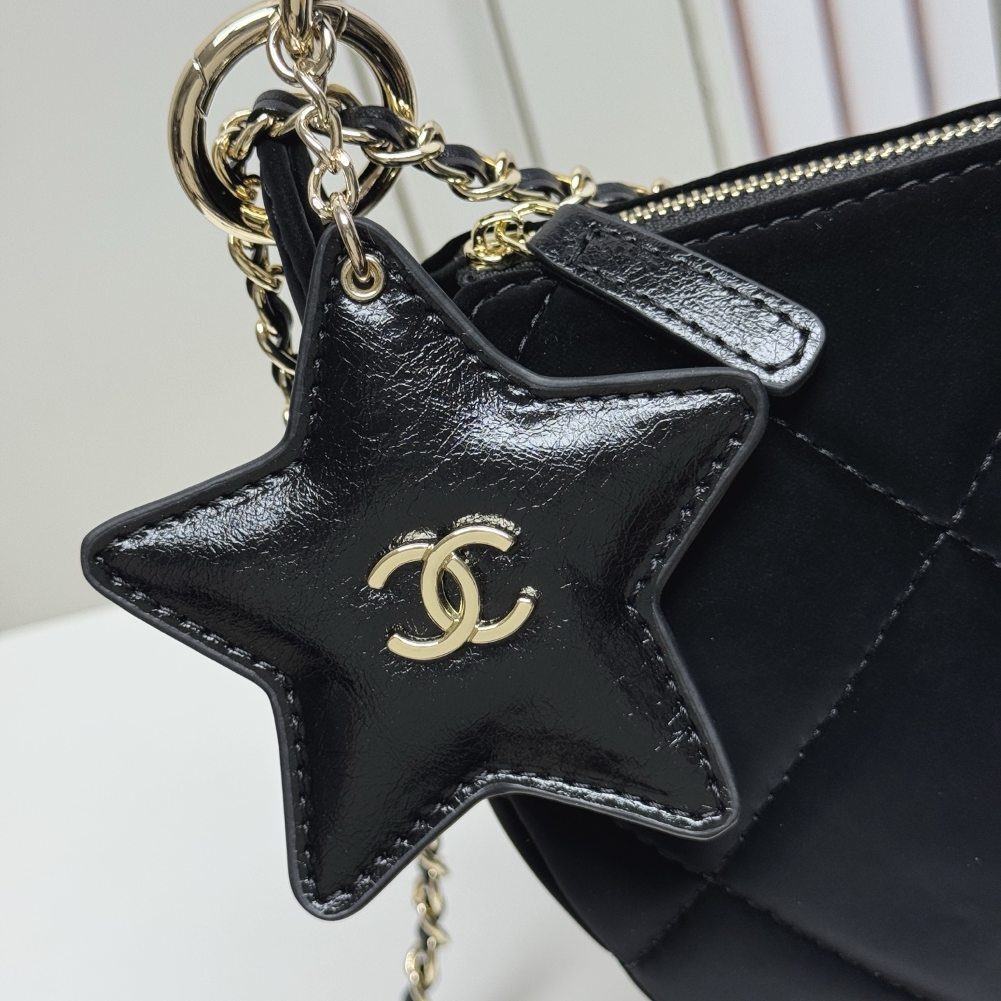 Pentagram leather pendant on the double embellishment, in turn is a small mirror, velvet nylon material is very textured! Weight is very light~ feel silky soft waxy~ leather wear metal chain ⛓️ can be adjusted, single shoulder crossbody can be switched at will ✔️ short shoulder strap can also be portable super elegant ah! With autumn and winter all kinds of wear, there is a sense of winter atmosphere!