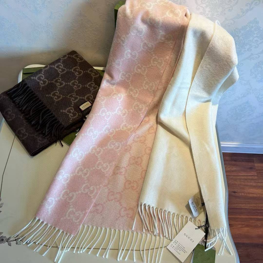 This cashmere jacquard scarf adopts a soft and gradual change color scheme, and alternately arranges the recognizable GG pattern. The fabric is very thick and warm, and the feel is huge and great! It can be wrapped and tied, soft and waxy to keep warm!