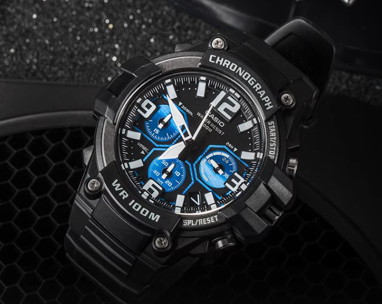 立体大表盘,树脂表带,金属按键,可生活防水100米。表盘直径50mm